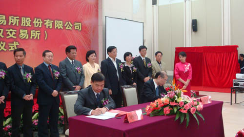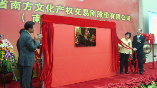 由省委宣传部牵头,南方报业传媒集团、南方联合产权交易中心、广东新金基投资有限公司、广东省出版集团、南方广播影视传媒集团和广东中凯文化传媒有限公司共同发起设立的广东省南方文化产权交易所(南方国际版权交易所,以下简称文交所),经过一年多的紧张筹备,于11月8日在广州举行挂牌仪式,标志着我省文化产权交易平台正式搭建起来,向完善现代文化市场体系迈出了坚实的一步。省委常委、宣传部长林雄同志、副省长雷于蓝同志亲自为文交所揭牌。
