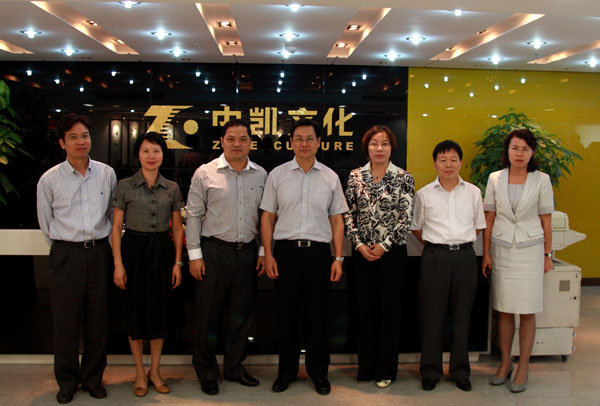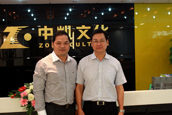 在交流结束时,陈书记还送给了中凯文化真诚的祝福:现在发展文化产业是天时地利人和,而中凯文化更是“事合”,在四合环境下希望中凯文化能够有广阔的前景,另外作为广东省委宣传部重点扶持上市的三家文化企业之一,祝愿中凯文化能够再次成为领头羊!