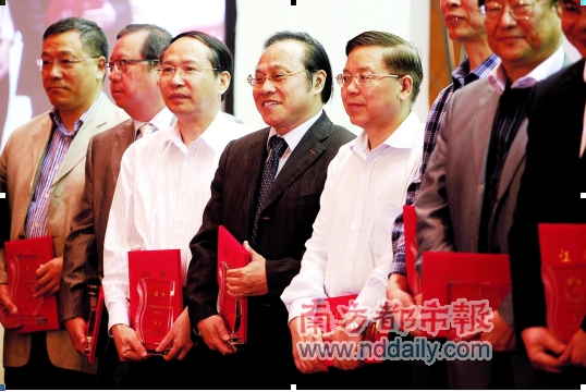 南方报业传媒集团党委书记、南方日报社社长杨兴锋(左四)等31人获颁发粤港澳合作促进会文化专业委员会顾问聘书